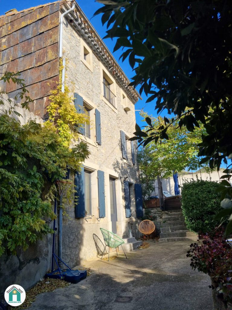 En plein centre du village de Pennautier, découvrez cette maison de charme en pierres, rénovée, de 125 m² habitables. Nous entrons par un grand portail qui donne sur une jolie cour, jouxtée à un jardin clôt de 140 m². Cette même cour offre l’accès sur la droite à une dépendance en pierre sur deux niveaux (bureau en rez-de-chaussée + une mezzanine), d’une surface de 66.5 m² qui est chauffée et raccordée à l’électricité (pas de sanitaires) ; idéale sans nul doute pour un projet professionnel, bureau, cabinet, chambre d’ami, ou petite location, et sur la gauche, nous accédons à la maison.