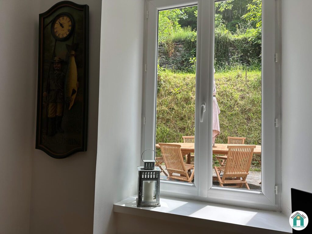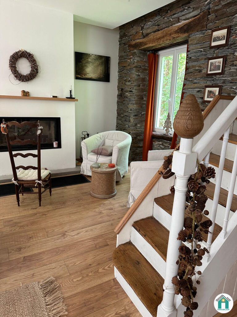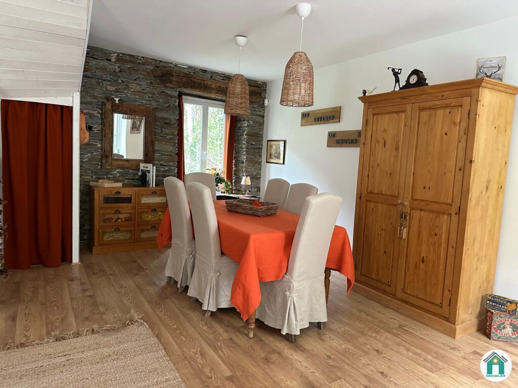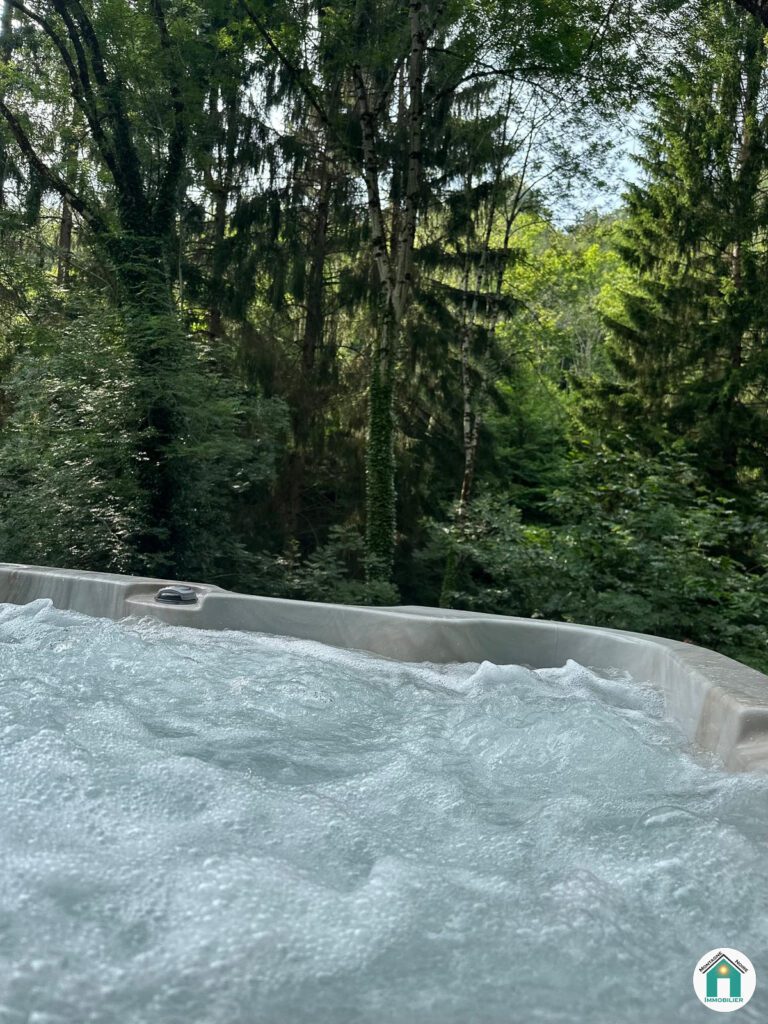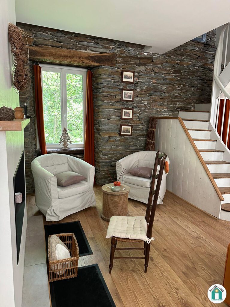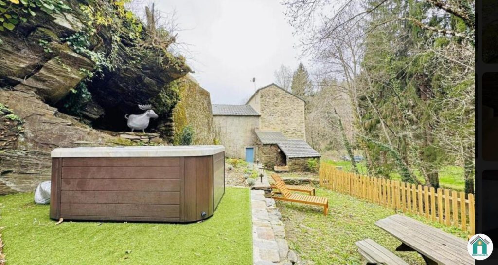 Il est composé d’une partie habitable totalement rénovée de 112 m² habitables, avec en rez-de-chaussée une très belle pièce de vie avec coin séjour et salle à manger avec un magnifique insert à bois et une cuisine séparée. De la cuisine, nous accédons à une des dépendances qui dispose en rez de chaussée d’un espace buanderie et d’une belle douche avec WC. De cette dépendance, nous accédons à la partie arrière du jardin, avec barbecue, espace pour pourvoir manger, jacuzzi au cœur de la nature, et un accès à la rivière et au bois.