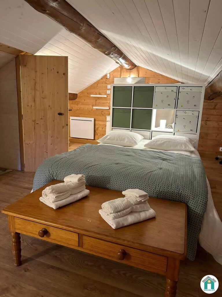 Au dernier étage sous toit, nous trouvons une très jolie pièce avec plusieurs ouvertures, un point d’eau (lavabo) et des coins rangements. Actuellement utilisée en chambre, cette pièce peut -être aussi idéale pour créer un atelier de travail, une bibliothèque, un coin salle de jeu, un dortoir avec plusieurs couchages, etc..