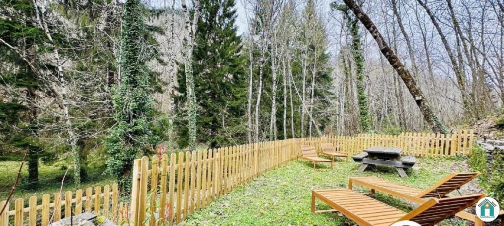 Ce moulin est au bord d’une rivière qui coule toute l’année et dispose d’un béal. Il y a également beaucoup de bois, ce qui garantie du chauffage pour plusieurs années ! Des aménagements sont encore possibles sur les parties plates.