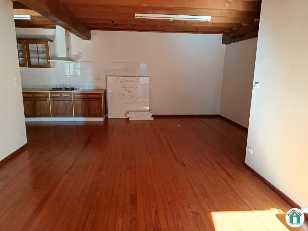 Logement 2 : Nous y accédons par un garage spacieux de 80 m², à l’intérieur duquel se trouve une plus petite pièce servant de hall et menant à l’étage supérieur. Nous arrivons ensuite sur la pièce à vivre composée d’une cuisine ouverte, d’une salle à manger ainsi que d’un salon. Depuis cette pièce, un couloir mène à la salle d’eau ainsi qu’à trois chambres et un toilette. Surface du bien : 80 m²