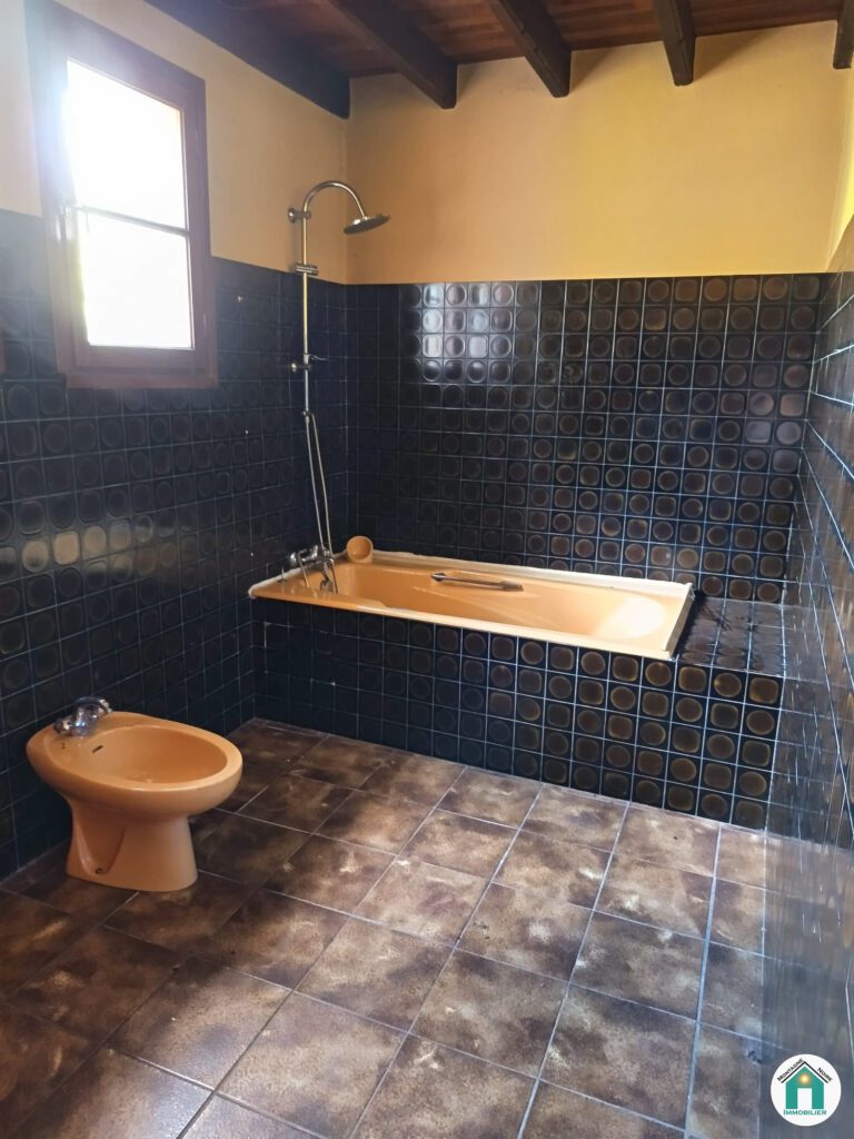 Description des trois logements : Logement 1 : Entrée par une véranda qui donne accès à une buanderie, ainsi qu’au hall/salon. Du salon, accès à la cuisine et à une première chambre avec salle d’eau, un WC dans le couloir, ainsi que l’escalier menant au reste des chambres. À l’étage : quatre chambres (dont une avec salle de bain), une salle de bain indépendante ainsi qu’un toilette. Surface du bien : 174 m²
