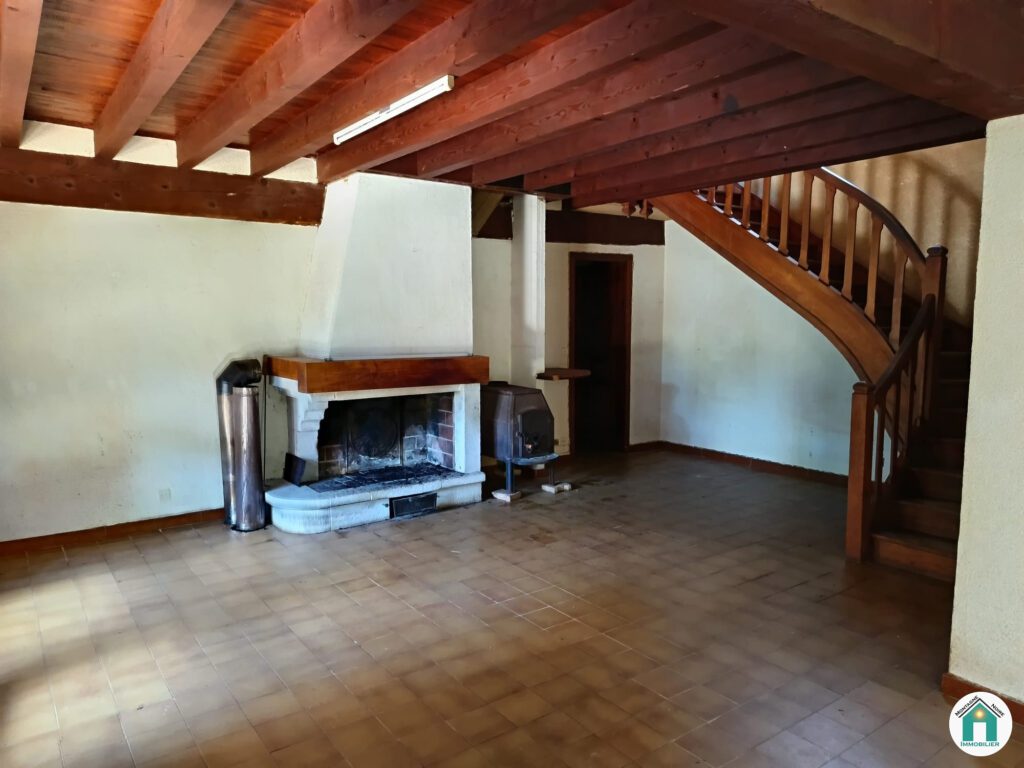 Logement 3 : L’entrée donne directement sur la cuisine, qui mène ensuite à un charmant séjour, équipé d’un poêle à bois. Depuis cette pièce, un couloir dessert l’espace nuit, composé de deux chambres et d’une salle d’eau avec WC. Le logement dispose également d’un accès voiture séparé des autres logements ainsi que d’un garage de 20,6m², surface totale du bien : 69 m²